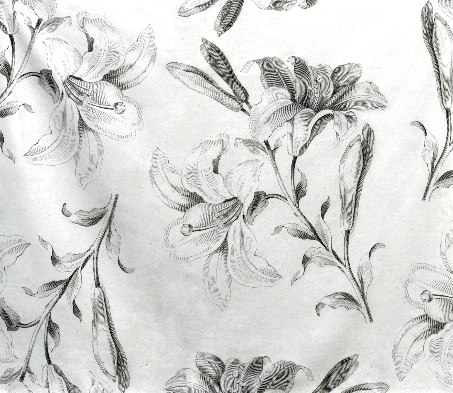 Etude botanique et graphique d’une fleur de lys. Dessin au trait, noir et blanc